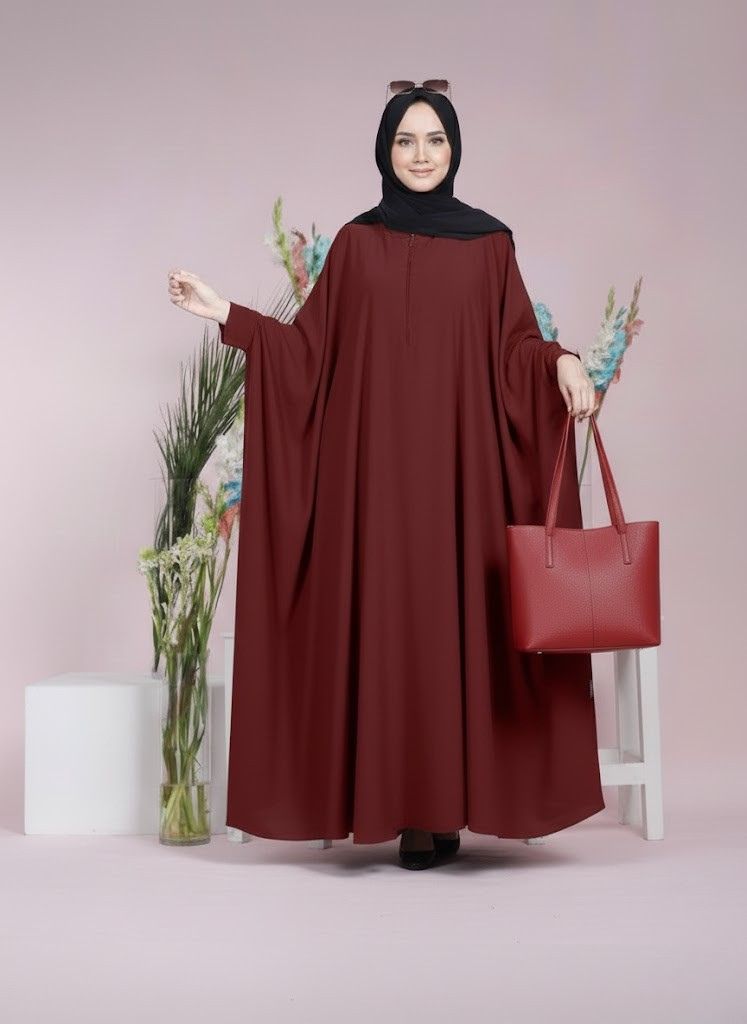 Make a bold yet elegant statement with our Maroon Kaftan Abaya with Matching Stollar & Hand Bag Combo, designed for women who love flowy silhouettes with refined modest style.